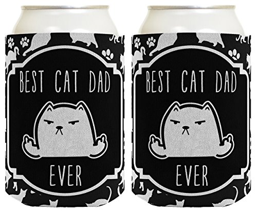 Cat Gifts for Cat Lovers Best Cat Dad Ever Rude Middle Finger Cat Flipping Off Cat Lover Gifts Cat Memes Crazy Cat Guy Gifts Cat Gag Gifts 2 Pack Can Coolie Drink Coolers Coolies Black
