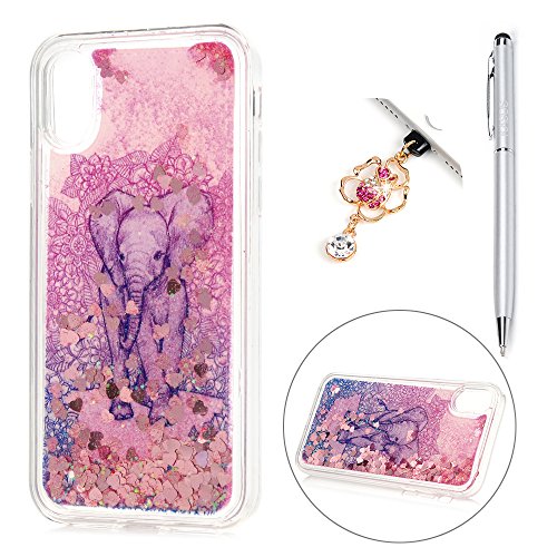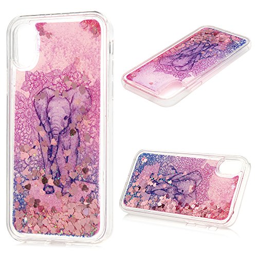 iPhone x케이스 클리어,Kasos Flowing Liquid Glitter Case Bling Heart Shape Quicksand슬림 피트 컬러풀한 페인트Tpu보호 케이스