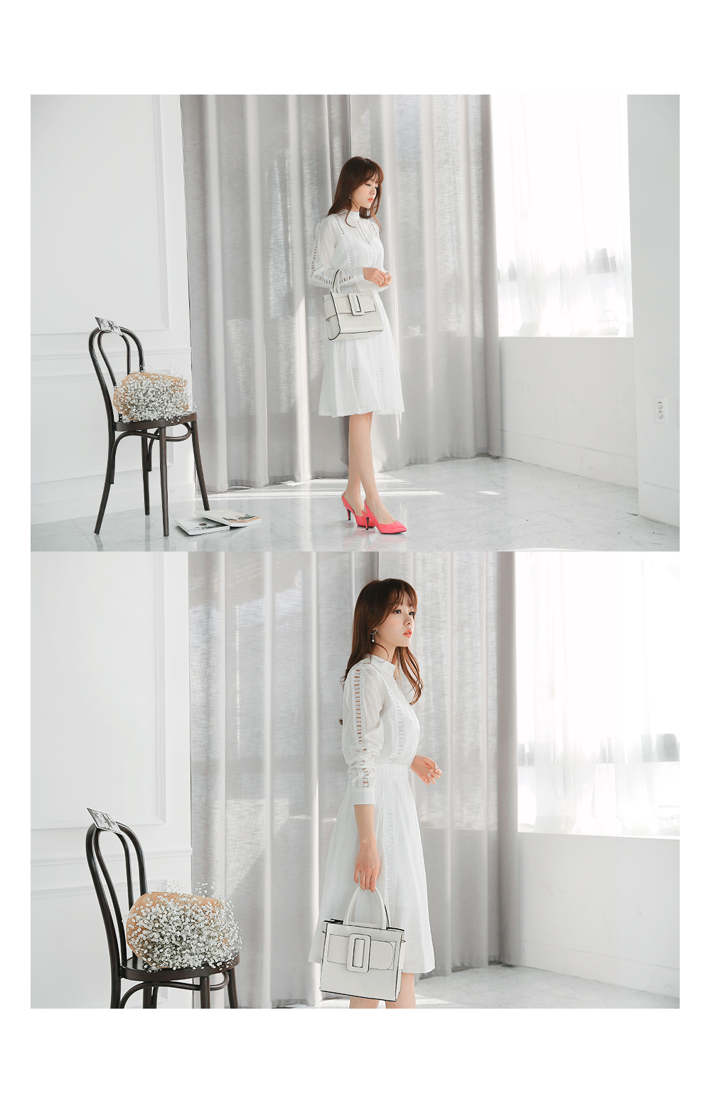 세로로 배열된 펀칭디테일로 세련된 무드까지