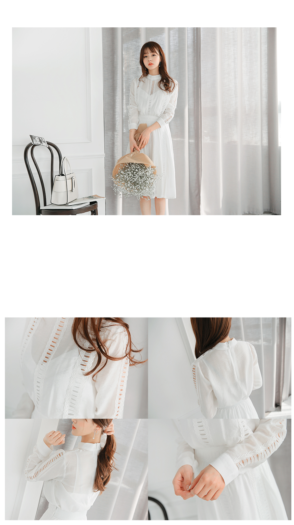 흘러내림없는 단정한 여밈 도와드리며 뒷 지퍼 디테일로