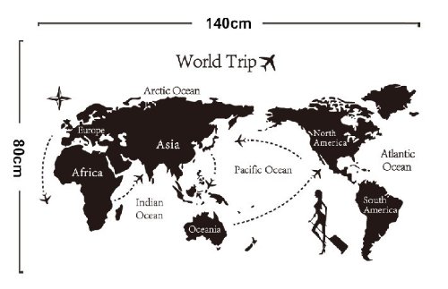 Ferris Store Traving World Map Wall Decal PVC Art Sticker Removable Home Decor Black 31.5x55.1"