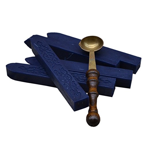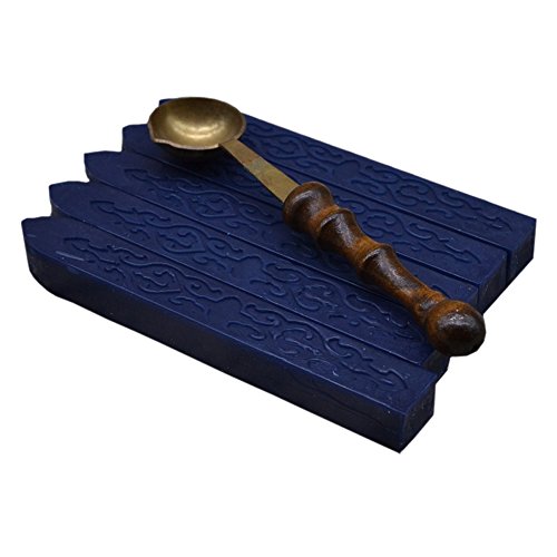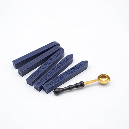 1PC Sealing Spoon + 5 Pcs Flowers Manuscript Sealing Seal Wax Sticks Sealing Wax for Postage Letter Retro Vintage Wax Seal Stamps In Navy Blue