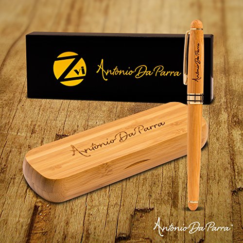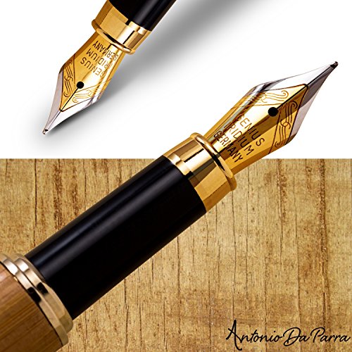 Antonio Da Parra(TM) Fountain Pen Calligraphy Writing Set Case- Premium Quality - 100% Handcrafted Bamboo Vintage Collection with Ink Refill Converter Gold Medium Nib