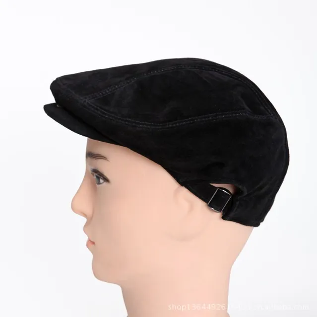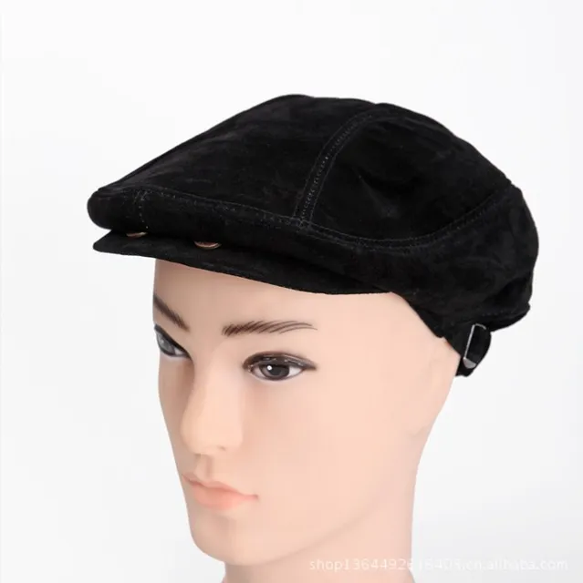 [해외]패션 겨울 성인 캐주얼 모자 가죽 베레모 모자 남성 겨울 야외 모자 아빠 패션 고글 블랙
