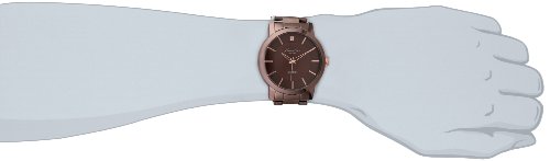 Dress watch, Japanese quartz movement, Polished rose-gold-tone skeleton dauphine hands, Polished rose-gold-tone sweep seconds, Genuine diamond hour marker at twelve o'clock position, Applied shiny rose-gold-tone baton markers, Matte brown dial with silver-tone logo below twelve o'clock position, Polished brown-ion-plated stainless steel bracelet with brushed inserts, adjustable links and push-button-clasp, Polished brown-ion-plated brass bezel, Polished brown-ion-plated brass round case with brushed accents, Textured brown-ion-plated steel crown, Stainless steel caseback, Mineral crystal, 3 ATM (30 meters/100 feet water resistant)Feature