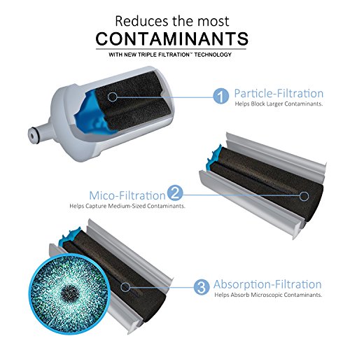 HIGH EFFICIENCY FILTRATION -- Uses revolutionized technology for water filtration, tastes great by leaving potentially healthy, beneficial minerals while removing chlorine, other chemicals and contaminants.
