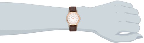 The Bulova Women's 97L121 Leather Strap Watch is a beautiful timepiece with fabulous details. Featuring a white analog dial with rose-toned Arabic numeral hour markers, rose gold ion-plated steel case and a brown calfskin band, this watch is teeming with feminine style and grace.