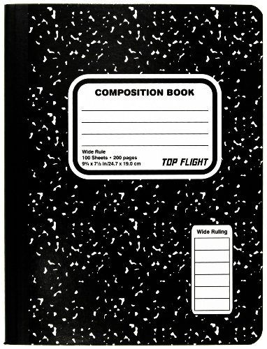 Top Flight Sewn Composition Book, Black and White Marble, Wide Rule, 100 Sheets