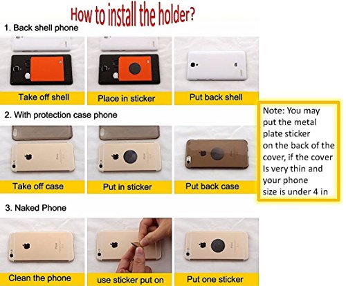 -. Feature : POWERFUL MAGNET, super strong 3M adhesive and 3.7cm diameter mount metal plate, it will hold strongly your device / Extensively tested to ensure that its magnetic pull and magnetic field doesn't interfere electronics of the device at all / Easy to install and use Cell Phone Holder. Stick it to whatever surface you want, including your car dashboard, office desktop, or kitchen counter, bathroom, bedroom etc / The 360° rotatable ball-shaped steel mount allows you to adjust the phone to your most comfortable angle. Any issue occurs, such as quality problem or defective item, please contact us directly, replacement or refund will be provided. / Navigation is extremely easy with this magnetic car mount phone holder . It can easily rotate, fix, or tilt to any angle that best assists the viewer of the phone.