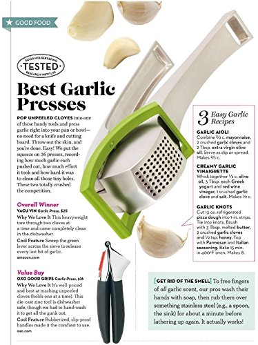 Studio : Vacu Vin Inc. Publisher : Vacu Vin Inc. Binding : Kitchen Product Description Made of stainless steel for strength and durability, the Vacu Vin Garlic Press creates optimal garlic taste. It is easy to use and features a unique scraper lever so you get every last bit of pressed garlic. The strong mechanism means little effort is needed to press garlic-a must have for those with waning hand strength. For over 25 years, Vacu Vin has manufactured and distributed patented, innovative kitchen, barware and housewares products. With a focus of bringing quality, functional and fun products to consumers at reasonable prices, Vacu Vin products have been awarded over 20 International Design and Trade Awards and are sold in over 80 countries. Vacu Vin believes innovative ideas set tomorrow's standards and it is with this philosophy that Vacu Vin will continue to bring unique, quality products to your home for years to come. 0