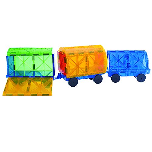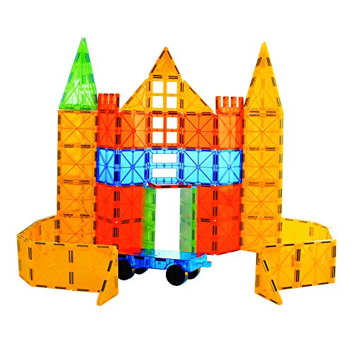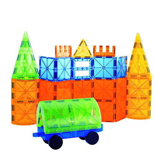 Mag-Genius Magnet Tiles Set Comes in a beautiful easy to pack away plastic storage bin, This set of Magnet Building Blocks includes all the Pieces to make it the Ultimate Gift for any occasion.