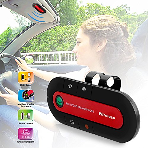 -. Feature : BLUETOOTH SPEAKER - Universal Bluetooth speaker can connect with your phone or tablet to provide hands free calling in the car! Stop worrying about traffic tickets or accidents, and stay connected while keeping your eyes on the road and your hands on the wheel! / CONNECT UP TO 2 DEVICES - Easy to set up and pair with up to two devices! After setup, the speaker will pair automatically as long as your device is within 10 meters. Instructions included - easy and convenient! / POWERFUL BATTERY - Bluetooth version: 3.0 Up to 16 hours talk time, 1000 hours standby time on a single charge. Rechargeable lithium-ion battery included. Class 2 RF output power, HSP.HFP 1.5 support profile. / MAGNET AND CLIP - Includes a visor clip and powerful magnet so you can locate it in the place that works best for you. Also includes Mini USB to USB charging cable and an AC power adapter which fits in your car's power socket. / LOUD SPEAKER/CALL SUPPORT - Features large, accessible volume and call control buttons. Supports English, Chinese, and Spanish, and includes voice prompts in each language.