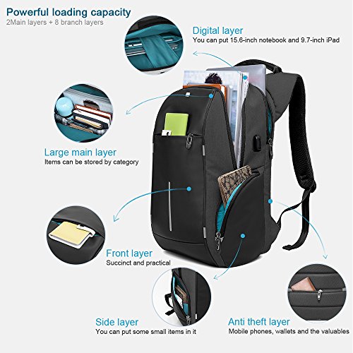 -. Title : Business Laptop Backpack, HiOrange Anti Theft Laptop Backpack with USB Charging Port, Night Light Reflective Waterproof College Bag, High-capacity Travel Shoulder Bag Fits 15.6" Laptop