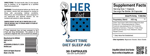 -. Binding : Health and Beauty -. Brand : HERdiet -. EAN : 0866207000249 -. Feature : Every single HERdiet bottle comes with Authentic Serial Number for customer security. / Weight management while you are sleeping! HERdiet PM Sleep Aid reduces appetite and cravings at night / Boosts effectiveness when paired with other HERdiet Diet Formulas / Contains no caffeine or stimulants / Get a great night sleep and help with weight management! -. IsAdultProduct : 0 -. Label : HERdiet -. LegalDisclaimer : Every single HERdiet bottle comes with Authentic Serial Number for customer security. -. Manufacturer : HERdiet -. MPN : Night Time Sleep Aid -. PackageQuantity : 1 -. PartNumber : Night Time Sleep Aid -. ProductGroup : Health and Beauty -. ProductTypeName : HEALTH_PERSONAL_CARE -. Publisher : HERdiet -. Studio : HERdiet -. Title : HERdiet PM Night Time Diet Sleep Aid For Women Extra Strength Supplement with Appetite Suppressant Pills -. UPC : 866207000249