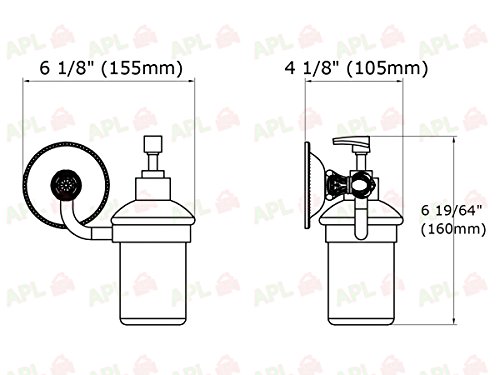 - Length: 6 1/8" (155mm), depth: 4 1/8" (105mm), height: 6 19/64" (160mm). Base Diameter: 3 15/16" (100mm).
