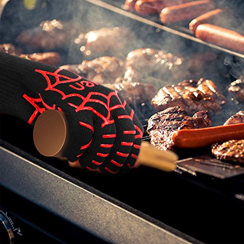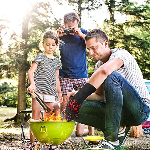 BBQ Cooking Gloves, 932°F Extreme Heat Resistant Grilling Gloves Non-Slip Kitchen Mitts BBQ Fireplace Accessories for Men Women, 1 Pair,14" Extra Long