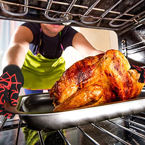 ★Non-Slip and Flexible: This cooking mitts/ grilling gloves fit the fingers like a glove, making moving hot items much safer and easier. Heat resistant gloves are equipped with Food Grade Silicone. You will not get your pans or foods dropped with a good grasp.