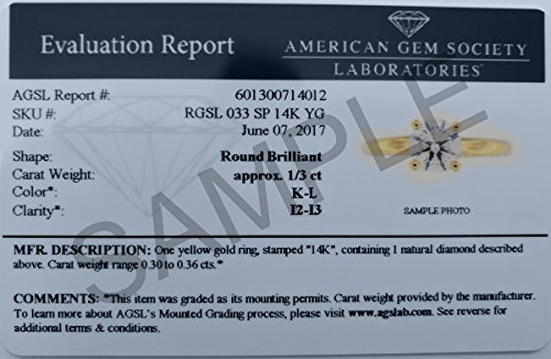 -. Title : AGS Certfied 1/3 Carat Round Diamond Solitaire Ring in 14K Yellow Gold (K-L Color, I2-I3 Clarity)