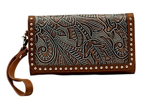 Studio : Blazin Roxx Publisher : Blazin Roxx Binding : Apparel Product Description Western style meets fashionable fun in this Blazin Roxx wallet. This stunning Clutch Wallet is made from leather and features a skillfully embossed floral design with a studded accent border. This striking women's wallet has a magnetic snap front closure, a removable leather wristlet for easy carrying, and a back exterior zip pocket for easy storage. Blazin Roxx is always the right choice for a woman wanting to make the best impression. 0