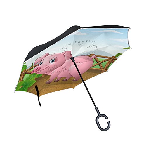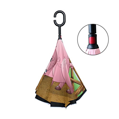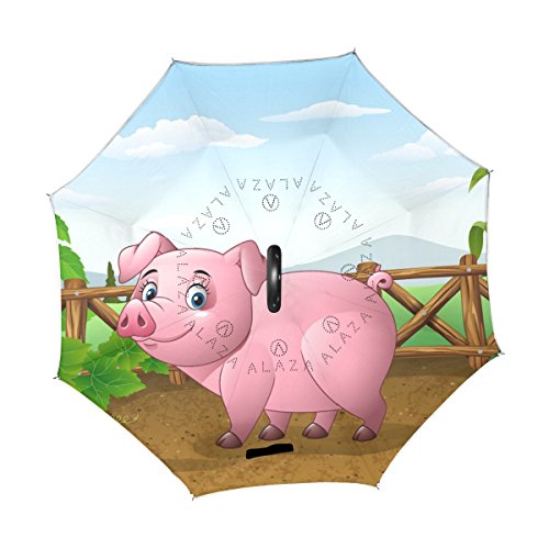 (LAVOVO)/Accessories/Umbrellas/DIRECT FROM USA/LAVOVO Cartoon Pig with Farm Pattern Inverted Double Layer Windproof Straight Umbrellas Inside-...