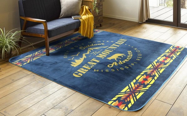 アメリカの大自然と独創性を感じるオルテガ柄を融合させたデザインのラグ。表面はボア素材であったかタッチ。裏面は不織布加工で床を傷つけにくくなっています。 |