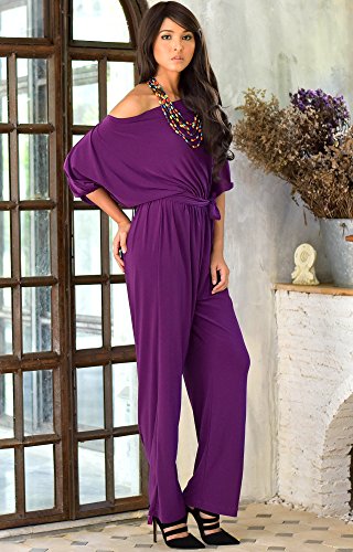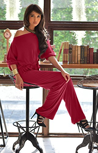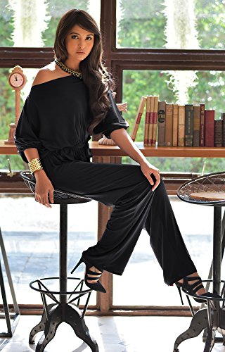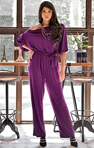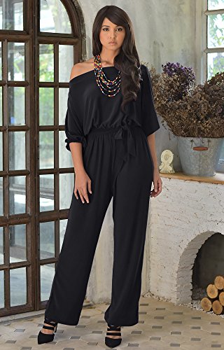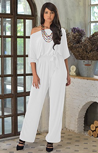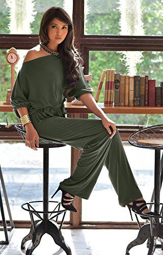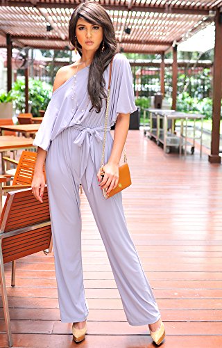 | KOH KOH Women Flattering One Shoulder 3/4 Sleeve Versatile Jumpsuit Playsuit Romper |