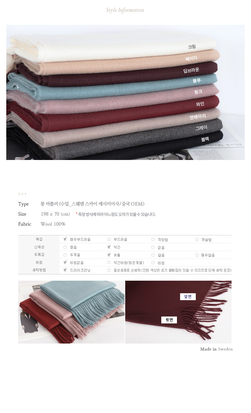 - 스웨덴 캐시미어 브랜드의 공법 그대로 만들어진 제품이에요!