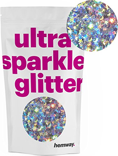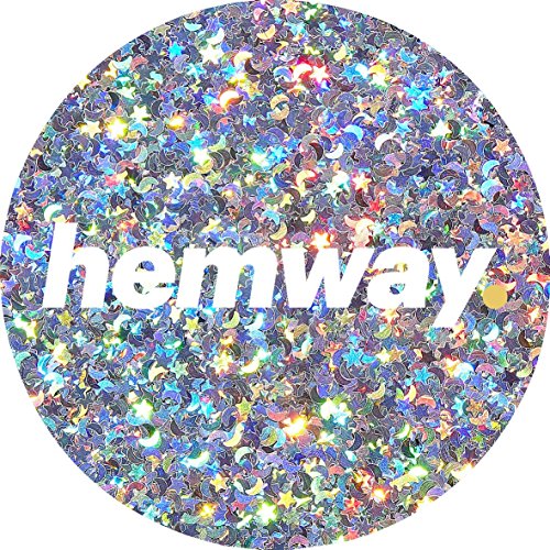 Hemway Premium Multi Purpose Glitter Dust Powder 100g / 3.5oz Arts & Crafts Wine Glass Decoration Weddings Cards Flowers Cosmetic Face Eye Body Nails Skin Hair (Silver Holographic Stars & Moons)