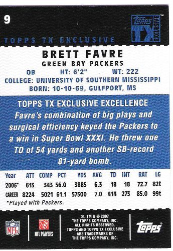 2007 Topps Tx Exclusive Football Series 100 Card Complete Mint Basic Hand Collated Set. Loaded with Stars Including Brett Favre, LaDainian Tomlinson, Tony Romo, Vince Young, Philip Rivers, Ben Roethlisberger, Peyton Manning, Randy Moss, Tom Brady, Matt Le