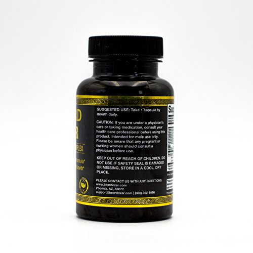 -. Feature : SUPPORTS BEARD GROWTH- Your beard matters. It's part of who you are. That's why we created this beard growth supplement for men. With a variety of vitamins and ingredients (including biotin) P.R.Imed for optimum beard potential, this supplement will help you achieve the full, long, and thick beard you've always wanted. Just like you feed your muscles with protein, you got to feed your beard with the vitamins it needs to grow! / NOURISH YOUR BEARD-Beard Czar Facial Hair Complex is made with a blend of essential vitamins including Vitamin B complex it may help stimulate dormant hair follicles and may help improve beard growth. It might also nourish the dermal matrix which may support improved beard hair quality. / BE A MAN -A Beard is a right of passage for men! Scientific research shows that beards make men look stronger, more dominant, and more attractive. Nothing screams "MAN" more than a full, clean, healthy-looking beard. Treat your beard with the beard growth vitamins and nutrients it needs to thrive and get all the attention it deserves! / HEALTHY BEARD FROM THE INSIDE OUT - A Healthy Beard begins with healthy skin, after all thats where beards grow from, right!? Many of the vitamins and ingredients in this Beard Czar Facial Hair Complex are also used for skin health. Now you can improve your skin so that it is softer, smoother, and more moisturized. The end result? A cleaner & healthier face with a dapper beard to go along with it! / 100% "FULLER & THICKER" GUARANTEE - If you're not satisfied with your fuller and thicker new beard, we'll refund every single penny. Join the hundreds of bearded gentlemen who trust in our beard growth products for their beard needs! See for yourself what the Beard Czar Revolution is all about! Simply click the Add to Cart button now to grab your risk-free bottle today!