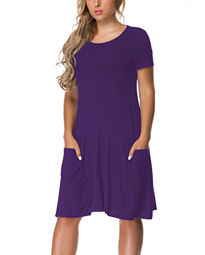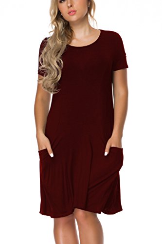 VERABENDI Women's Short Sleeve Dress Casual Loose Pocket T-Shirt Dress