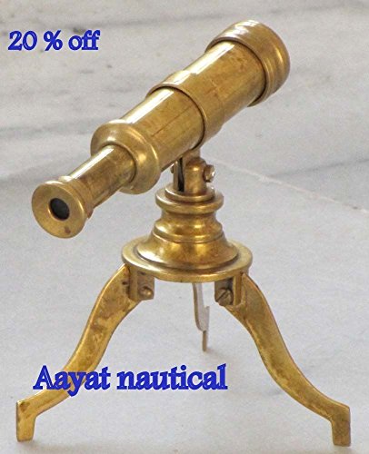 Product Description Nautical Beautifully Polished Finish Brass Telescope With Tripod Stand 20 %Off 1) It is made of Brass. 2) Finish : Old brass antique finish. 3) Telescope With Stand. 4) Beautiful Single Barrel Telescope 0