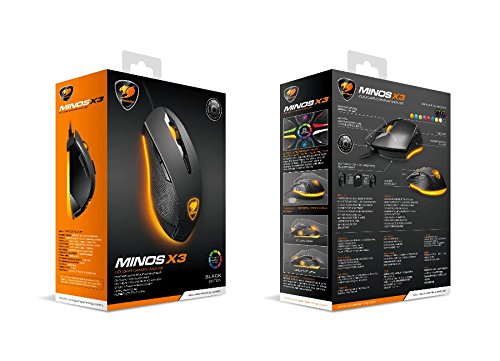 -. Binding : Personal Computers -. Brand : Cougar -. EAN : 0871520009534 -. Feature : Deadly Precisios Pro-Grade Optical Sensor: PMW3310 / On-the-Fly DPI Adjustment (400/800/1600/3200) switch will allow you to select the right DPI level for each situation / Refined ergonomic design, rubber coated flanks and unique tapered design for Claw Grip and Fingertip Grip users / 8-Color Breathing Backlight with 10 effects / On-the-Fly Polling Rate Adjustment (125/250/500/1000 Hz) -. HardwarePlatform : Pc -. Label : Cougar -. Manufacturer : Cougar -. Model : 3MMX3WOB.0001 -. MPN : 3MMX3WOB.0001 -. OperatingSystem : Macintosh -. PackageQuantity : 1 -. PartNumber : 3MMX3WOB.0001 -. Platform : Windows 8 / Windows Vista Business / Windows Vista EnterP.R.Ise / Windows Vista Home Basic / Windows Vista Home Premium / Windows Vista Ultimate / Windows XP Home Edition / Windows XP Professional -. ProductGroup : Video Games -. ProductTypeName : COMPUTER_INPUT_DEVICE -. Publisher : Cougar -. Studio : Cougar -. Title : COUGAR Minos X3 Best Gaming Mouse with On-the-Fly DPI -. UPC : 871520009534