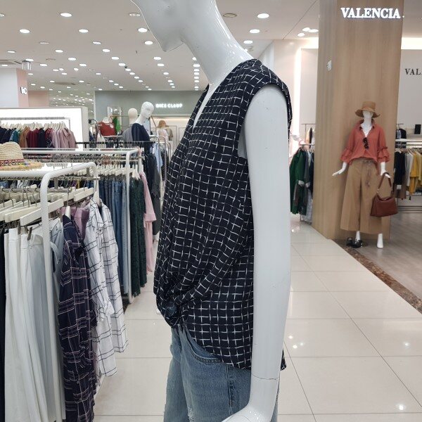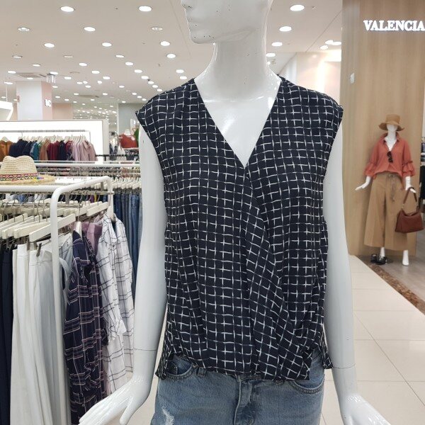 브이넥 패턴블라우스로 앞선이넣어입은듯한 느낌으로입을수있는 블라우스