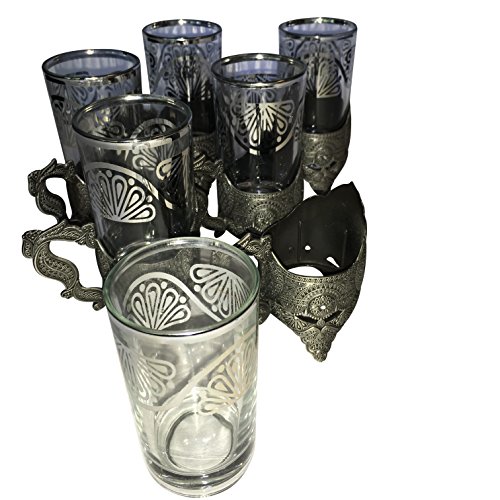 -. Feature : Set of 6 tea cups / Filigree pewter / Cups are dishwasher safe / Moroccan design