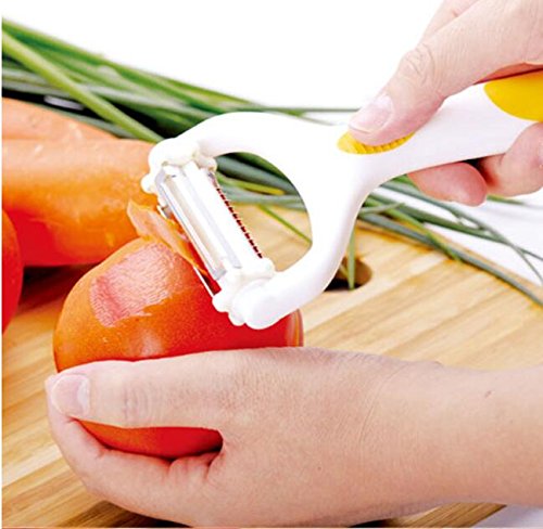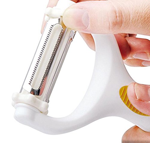 3 peels in 1 - handy potato peeler with rotating straight, serrated and julienne blades - simply turn the slicer for your desired cut