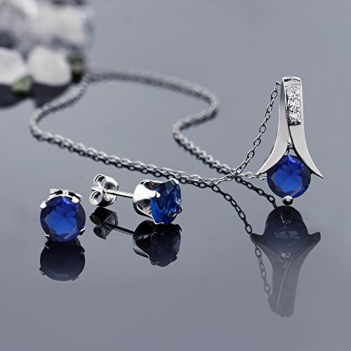 -. Binding : Jewelry -. Brand : Gem Stone King -. Color : Blue -. Department : womens -. Feature : Created Sapphire / 925 Sterling Silver / With 18" Sterling Silver Chain / Gemstones may have been treated to improve their appearance or durability and may require special care. -. Model : BS-270-SET-CREATED-SAPPHIRE -. NumberOfItems : 1 -. PackageQuantity : 1 -. ProductGroup : Jewelry -. ProductTypeName : FINENECKLACEBRACELETANKLET -. Title : 2.40 Ct Round Created Sapphire .925 Silver Pendant and Earrings Set 18" Chain