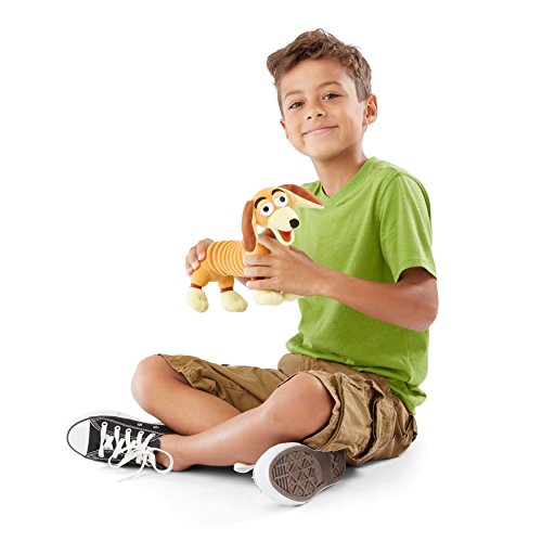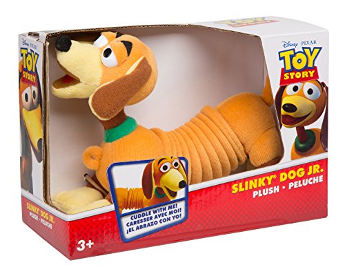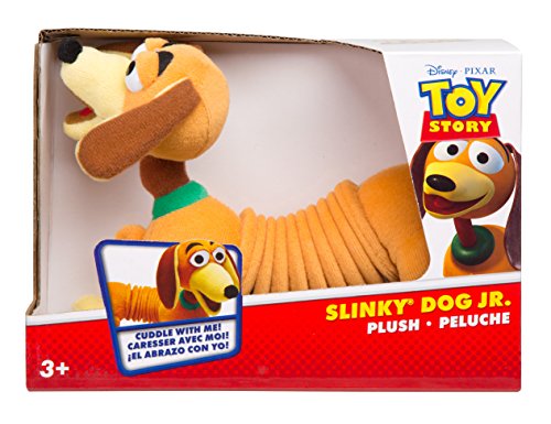 Disney Pixar Toy Story Slinky Dog Plush Jr. is a softer and cuddlier version of the classic pull toy! Smaller than the original version, Slinky Dog (or “Slink” as his good friend Woody calls him) has a stuffed, all-plush body and Slinky mid-section, but covered in a soft plush material that makes Slinky Dog soft to the touch and comforting for children to hold and makes him an ideal companion for travel and bedtime. Slinky Dog Jr Plush measures 5.5in. tall head to toe, and his body stretches from 5in. to 10in. long! Recommended for children 3 years of age and older.Feature