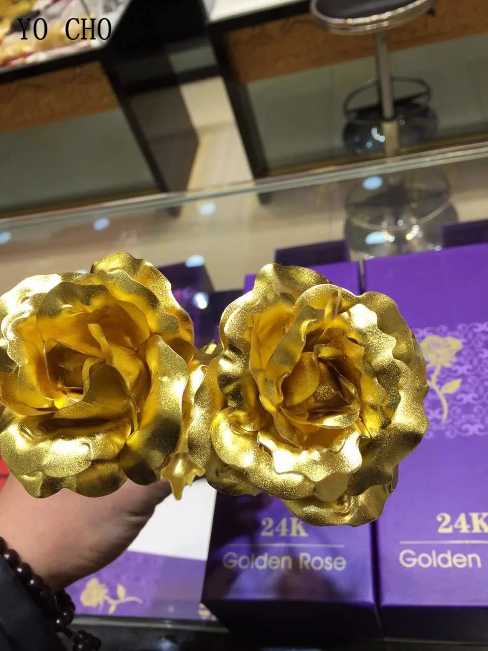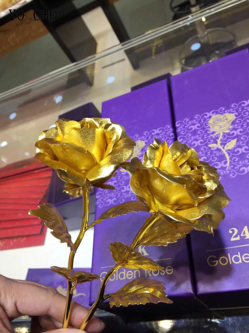 Material:Plastic, Polyethylene, metal,artificial 24K gold plated rose