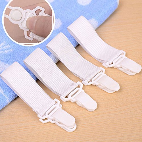 Pevor Adjustable Bed Sheet Fasteners Suspenders, Cover Grippers Holder Clips, White, Set of 4