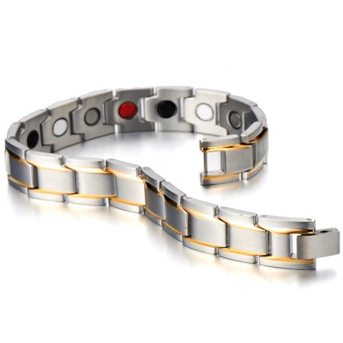 -. Title : Magnetic Stainless Steel Mens Gold Black Power Element Bracelet with Magnets and Free Link Removal Kit