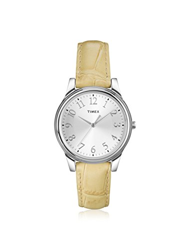 -. Title : Timex Women's T2P128 Beige/Silver Leather Watch