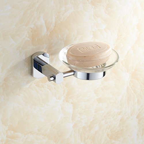 -. Title : Leyden Wall Mounted Chrome Finish Brass Material Glass Soap Dish Bathroom Shower Caddies