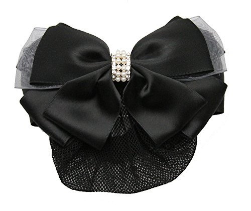 -. Title : GLOBAL BOX シニヨン リボン バレッタ ネット 付 パール 黒 紺