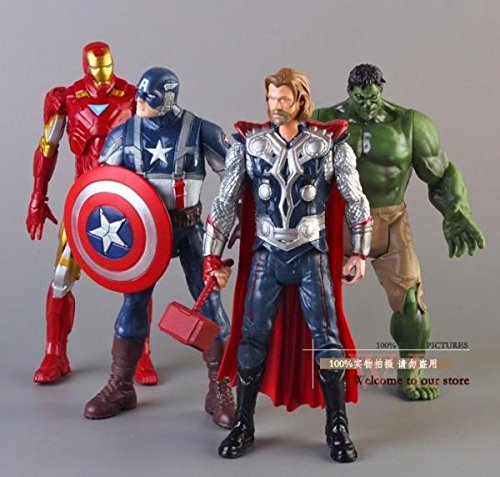 -. Binding : Toy -. Brand : Jtoy -. EAN : 8111169679920 -. Feature : Commodity material: PVC. Condition: 100% NEW / Size: Approx 20cm. Age Range: 8+ / Theme: Movie. Color: Multicolor / Package: Packed in Bag / Estimated Delivery Time: 14-26 days (be shipped out within 3 business days) -. Label : China -. Manufacturer : China -. ProductGroup : Toy -. ProductTypeName : TOYS_AND_GAMES -. Publisher : China -. Studio : China -. Title : The Avengers Super Heroes Captain America Thor Hulk Iron Man PVC Action Figure Collection Model Toys Dolls 8" 20CM 4pcs/set pop helden kinderen speelgoed