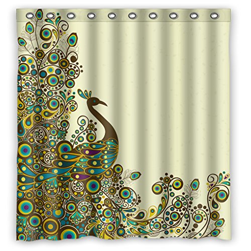 Custom Beautiful Peacock Pattern Waterproof Polyester Fabric Shower Curtain 66 x 72