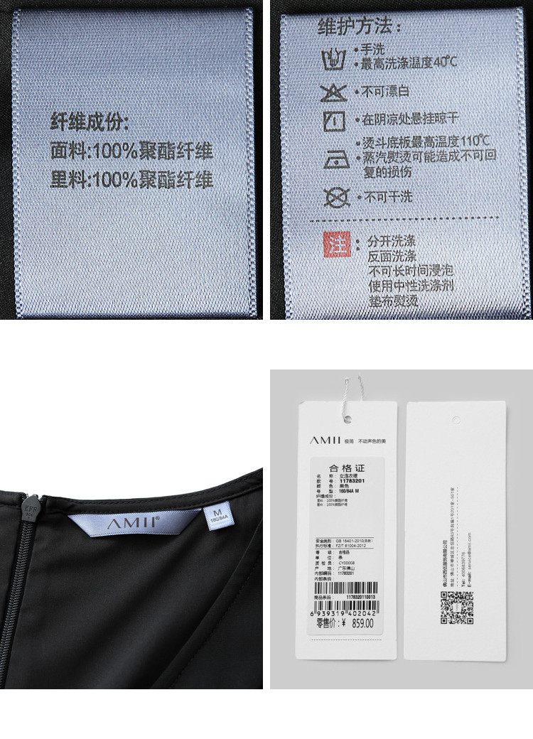 | 洗涤标准: | 悬挂晾干不可漂白40℃以下手洗110℃以下垫布熨烫不可浸泡不可干洗 |