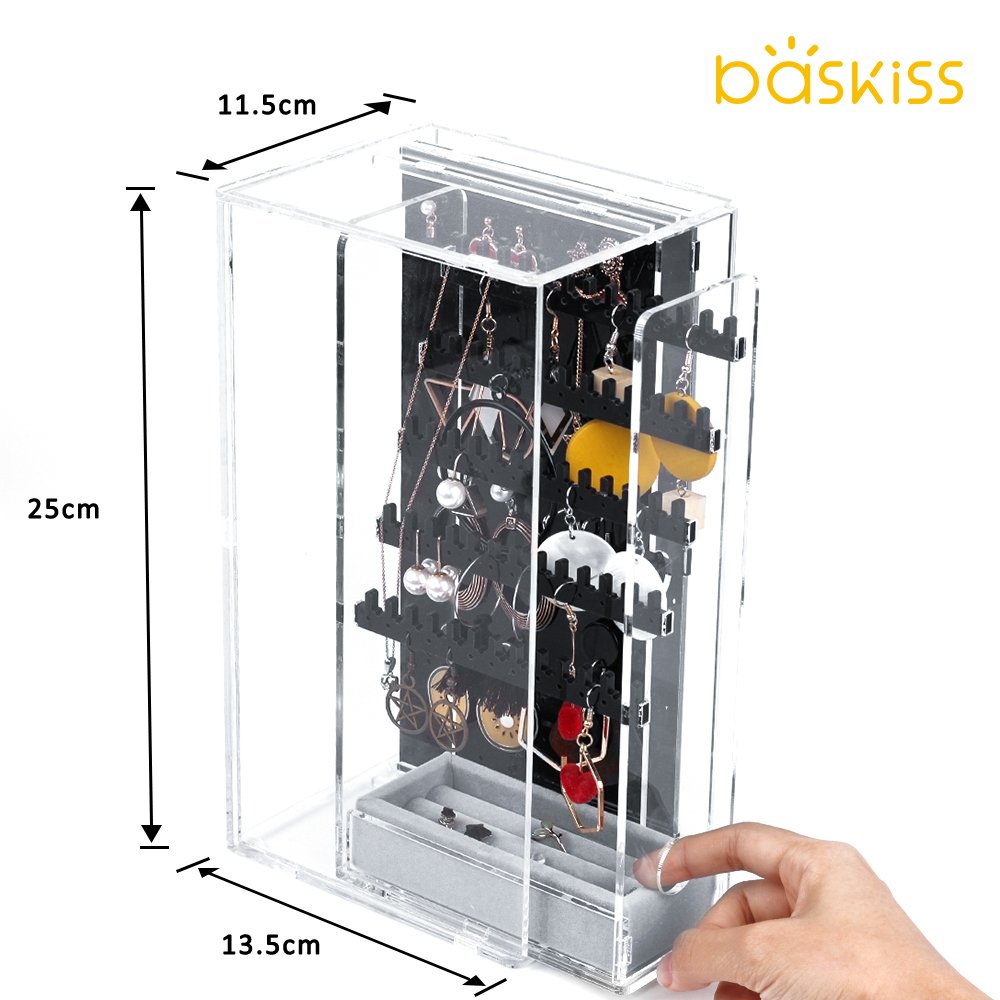 ♕ 最大空間利用 - 引き出しは二層があります。第一層は5段の黒アクリル収納ラックがあります。段階式的なデザインのため、空間が最大的に利用します。それで、様々なネックレス・イヤリング・ピアス等のアクセサリーほとんど収納できます。穴数もラック数も65個です。第二層は黒アクリル板であります。穴数は112個があります。このアクリル板は真ん中に置くため、両面でもアクセサリーを掛けられます。空間利用性と実用性は最高です!