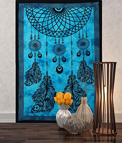 Tapestry Single Turquoise Dream Catcher hippie mandal Wall Hanging Art Decor Mandala Tapestries Hippie Dorm 84X55 inches AAKRITI GALLERY (Turquoise)