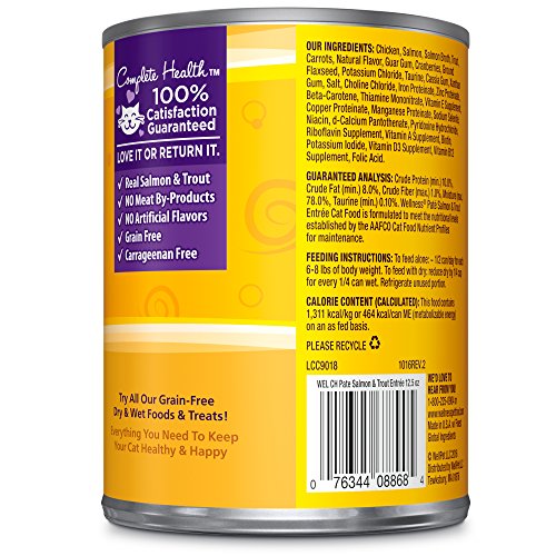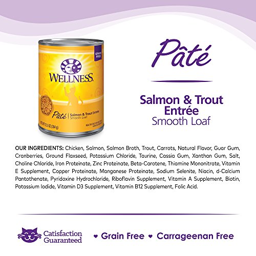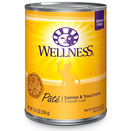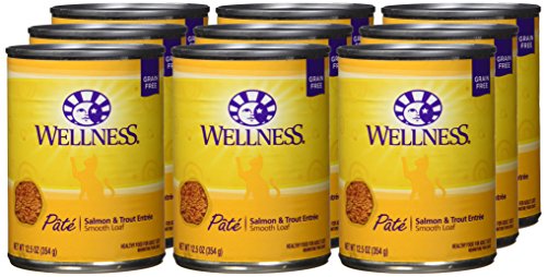 Wellness Natural Grain Free Wet Canned Cat Food, Salmon & Trout Pate, 12.5-Ounce Can (Pack of 12)